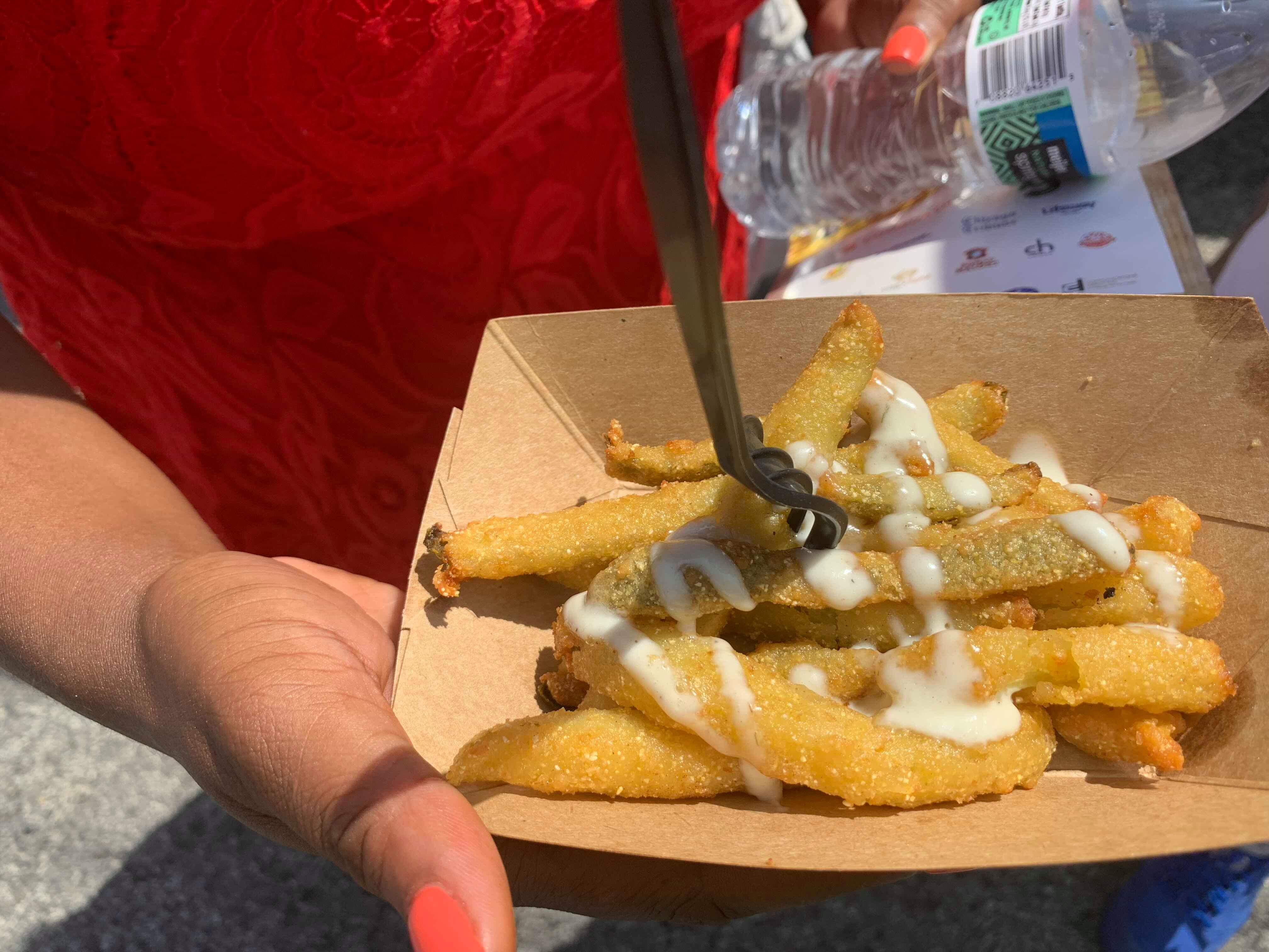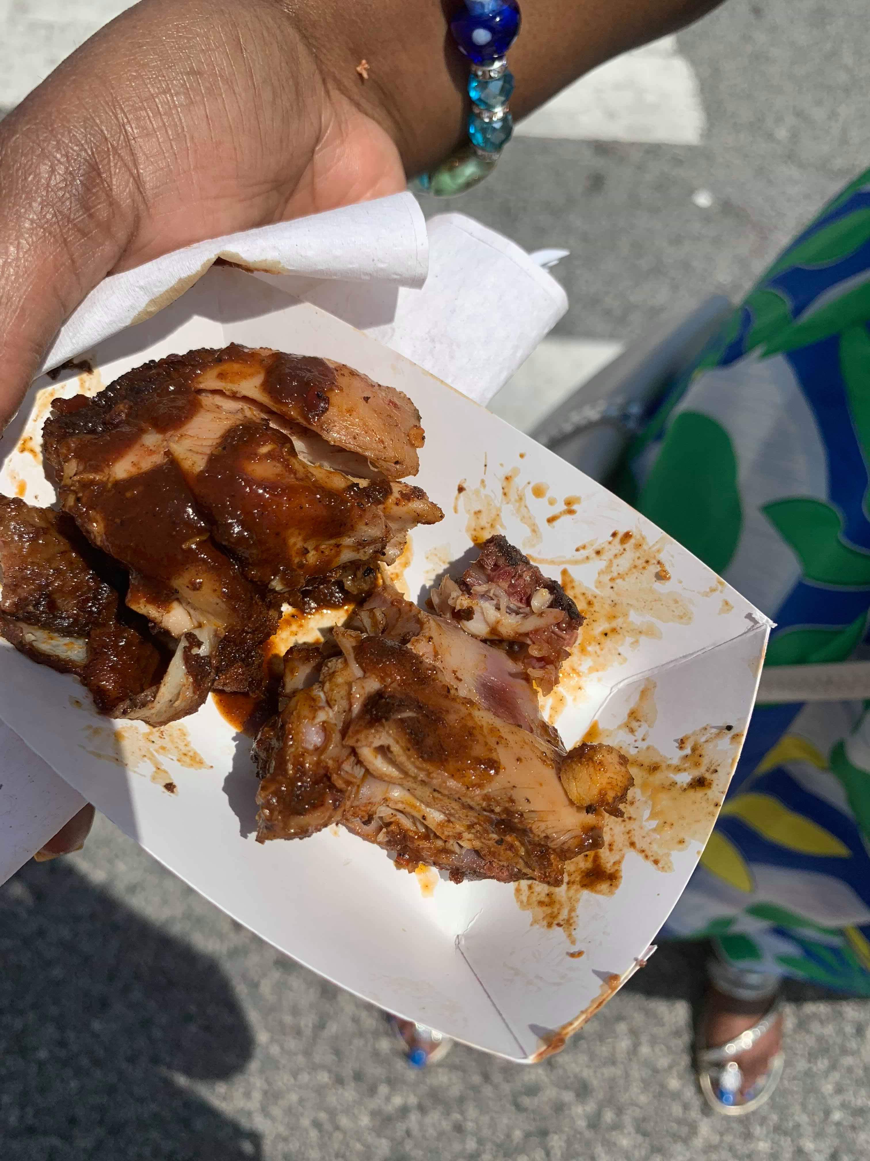 I tried the pickle fries,jerk chicken and ice cream. My favorite was the ice cream it was mixed with orange sherbet, chocolate, vanilla and pecan. Although i wasn’t to found of the other food i got in still enjoyed tasting it.